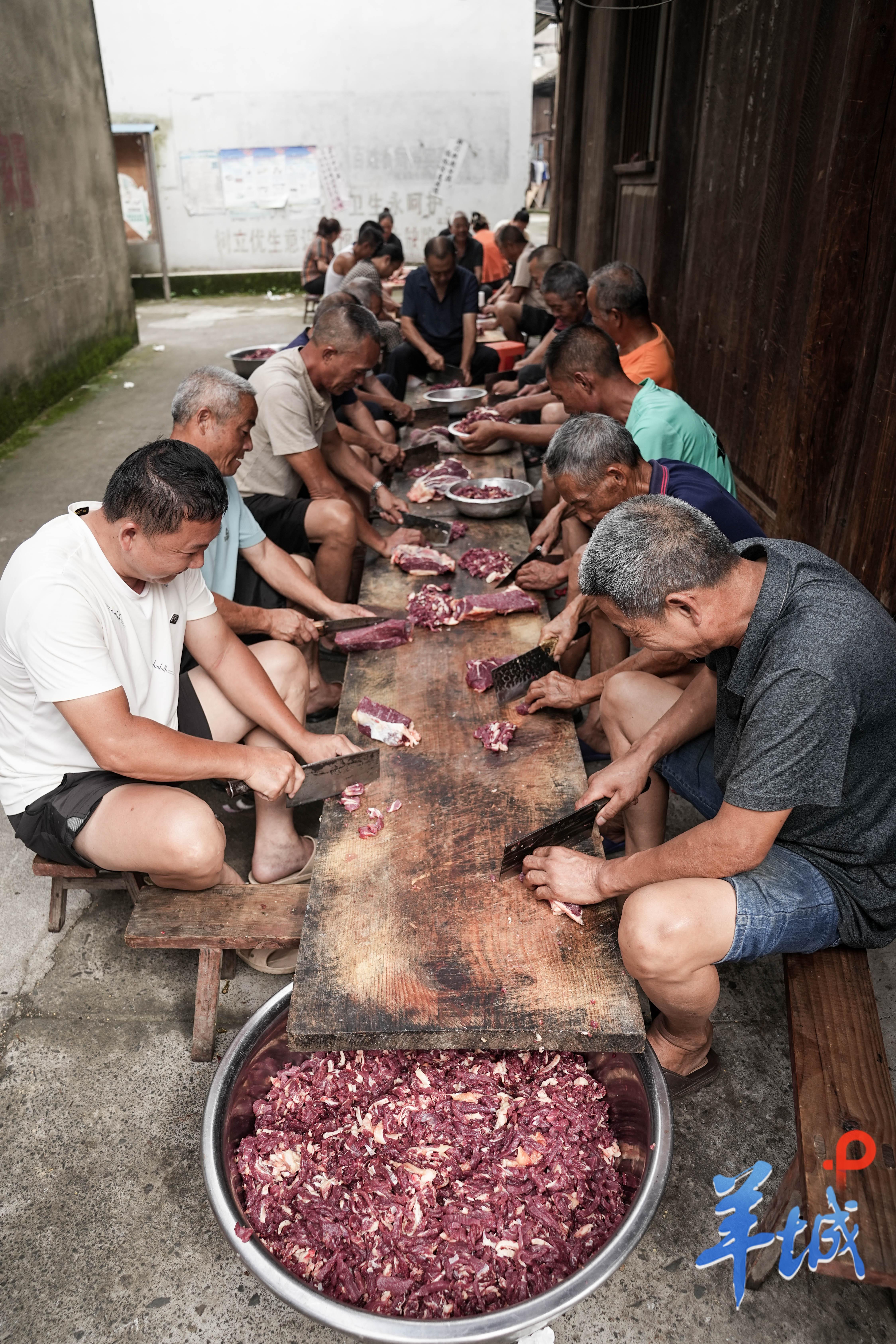“带上菜刀来村委会!”简单的集结令在村里迅速传开。自榕江县受到洪涝灾害以来,每日清晨数百村民手持菜刀、扛着食材,从村子的四面八方汇聚在村社食堂。