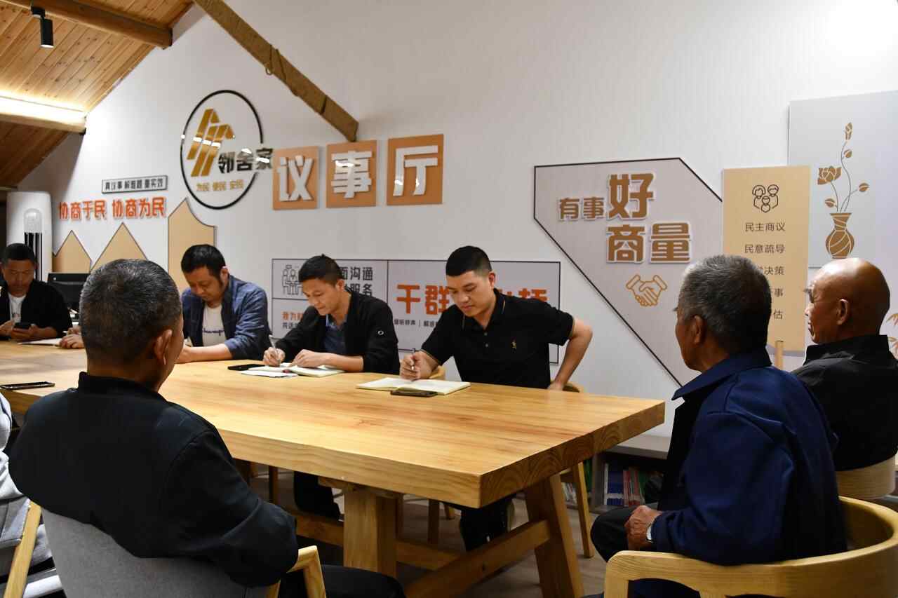武义县后陈村村“两委”在邻舍家议事厅与村民座谈,收集民意。共享联盟·武义 吕柳燕 摄