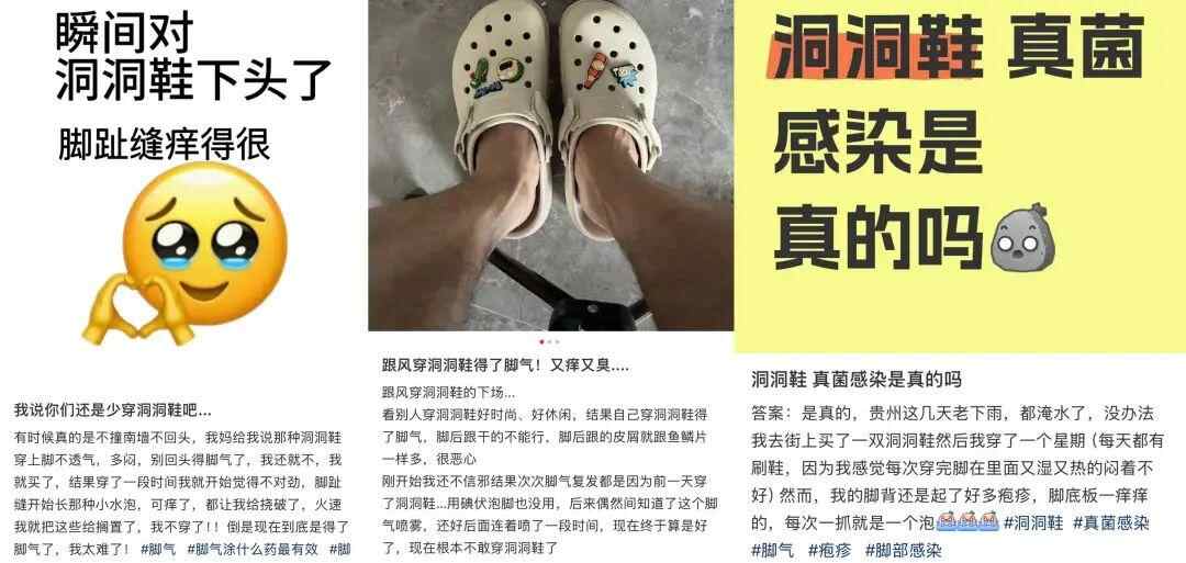她表示,比起网面鞋、布鞋来说,洞洞鞋吸汗性不强 ,而对 比同样以塑料材质为主的拖鞋,整体透气性更弱。这两方面都可能让洞洞鞋更容易产生潮湿的环境。