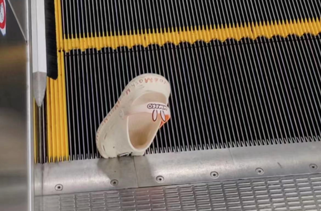 穿洞洞鞋乘坐扶梯