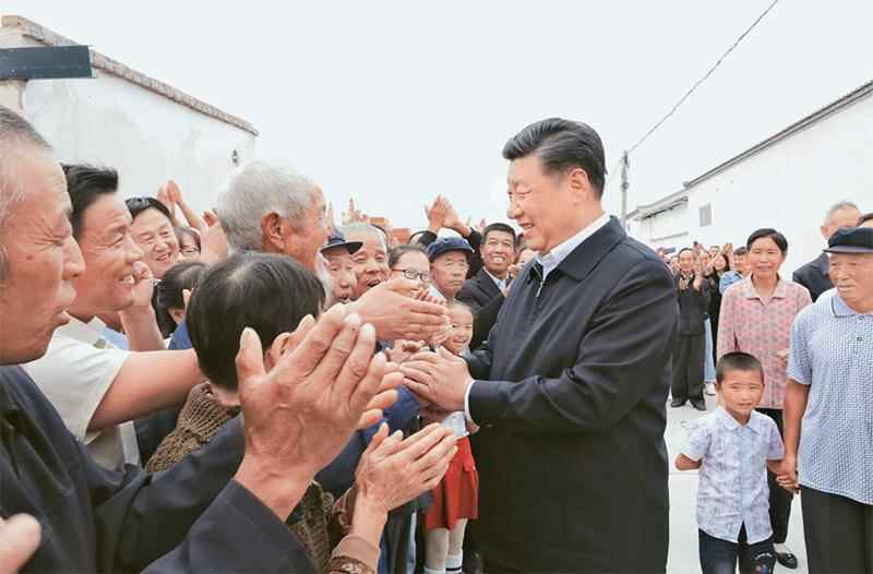 2019年8月19日至22日,中共中央总书记、国家主席、中央军委主席习近平在甘肃考察。这是21日上午,习近平在武威市古浪县黄花滩生态移民区富民新村同村民亲切交谈。 新华社记者 鞠鹏/摄