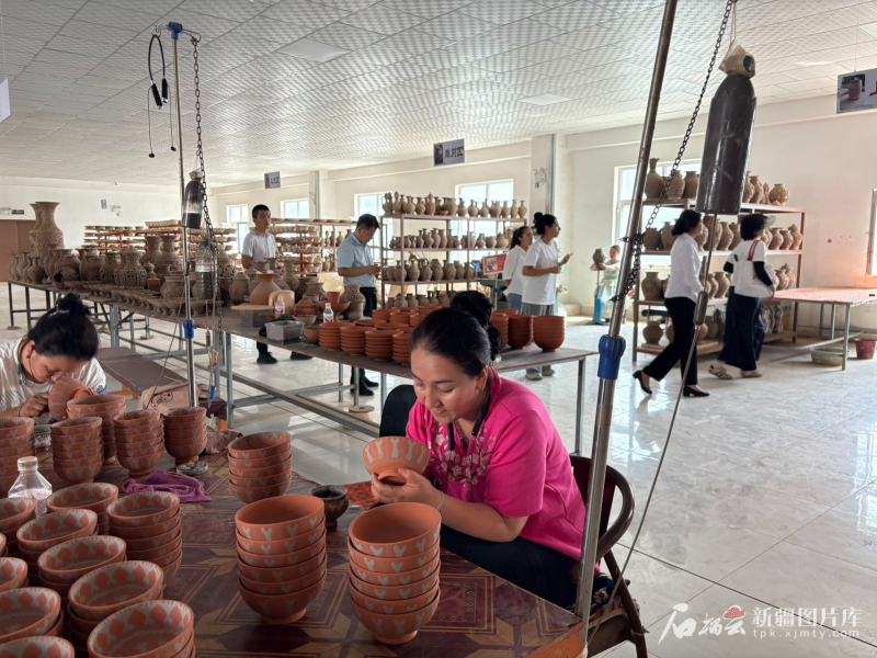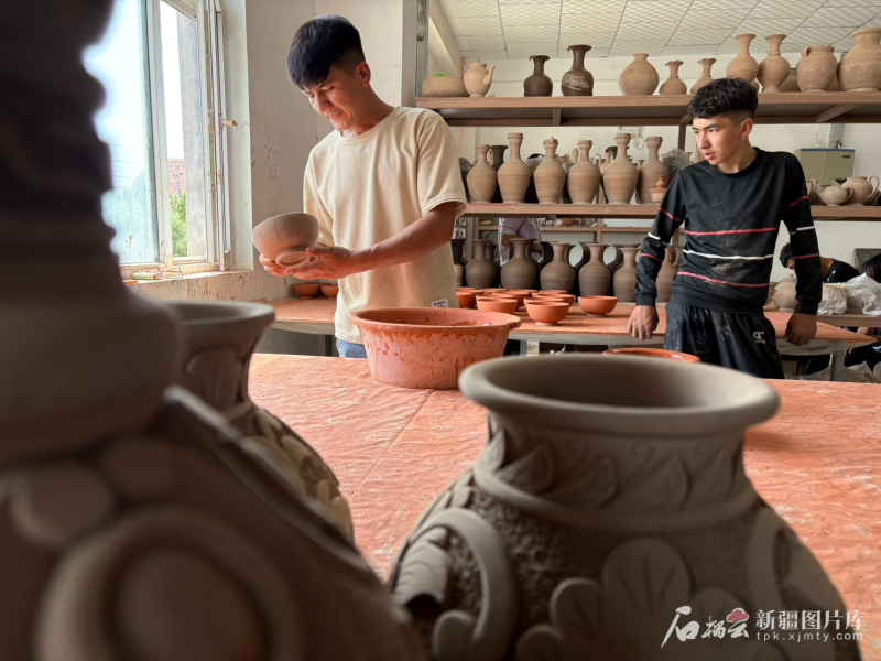 6月27日,阿克陶县巴仁乡就业实训基地内的米拉斯土陶手工艺专业合作社里,年轻匠人正在制作土陶。石榴云/新疆日报记者 王晶晶摄