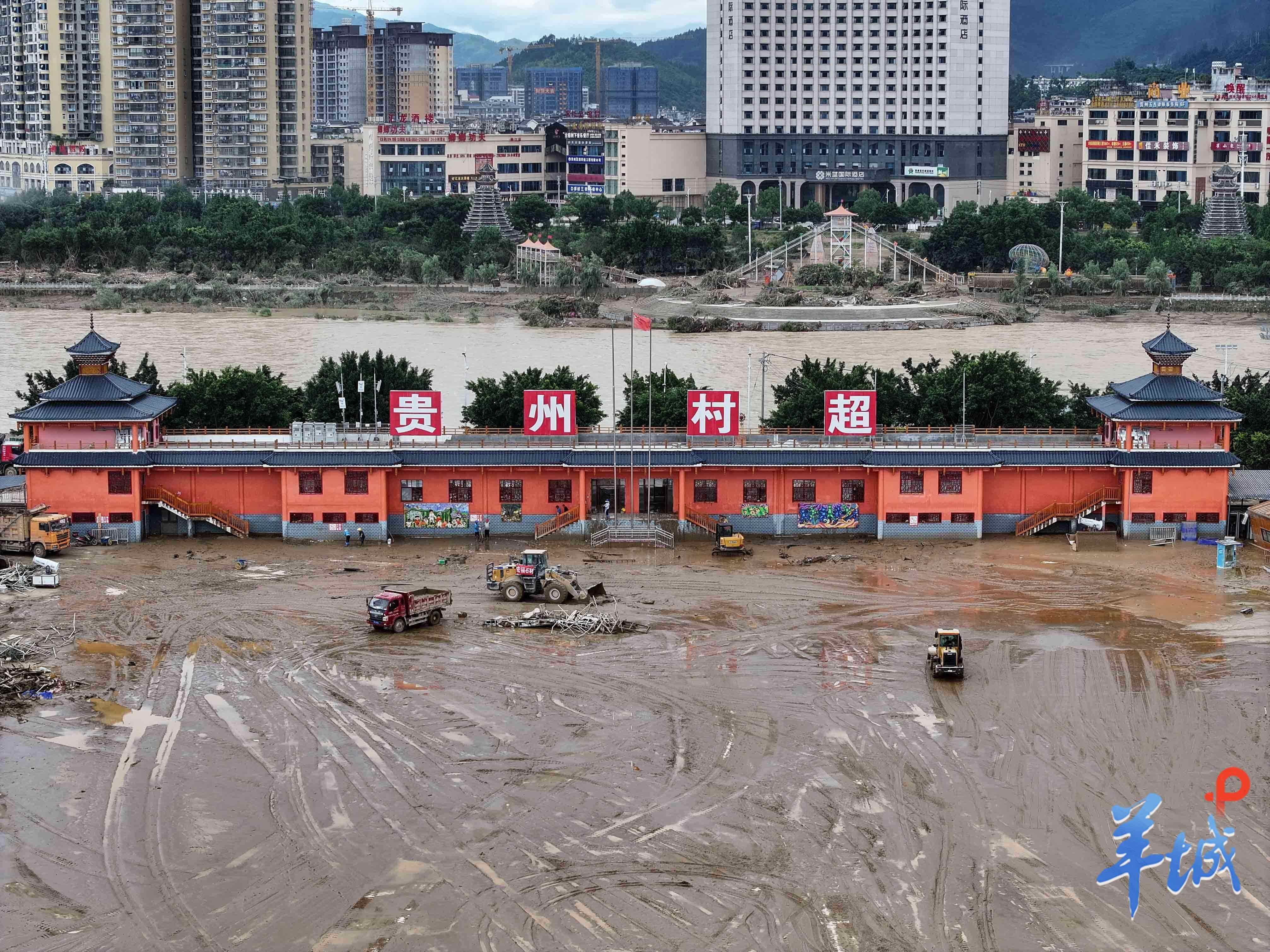 洪水稍退,榕江县体育训练中心主任唐龙看着满是泥浆的球场,暗暗下定决心:“这球场可是咱榕江的脸面,就是拼了老命也要让它干净起来!”