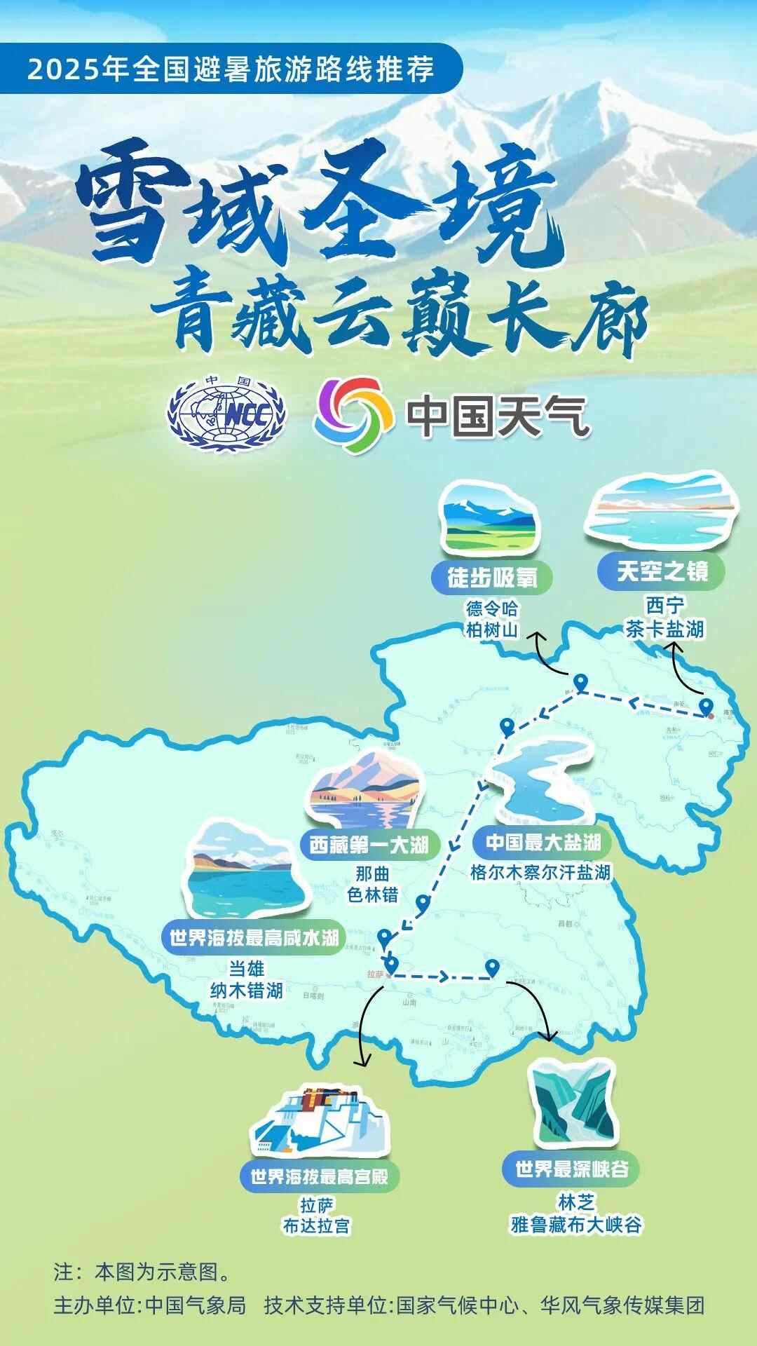此前,中国气象局与文化和旅游部联合发布全国冰雪旅游路线、“五一”踏青赏花旅游路线。在其成功经验的基础上,中国气象局以科学客观技术评价指标与多元分析机制,充分考虑推荐路线的避暑资源优势和区位优势,最终确定16条兼具清凉属性与旅游价值的全国避暑旅游推荐路线。