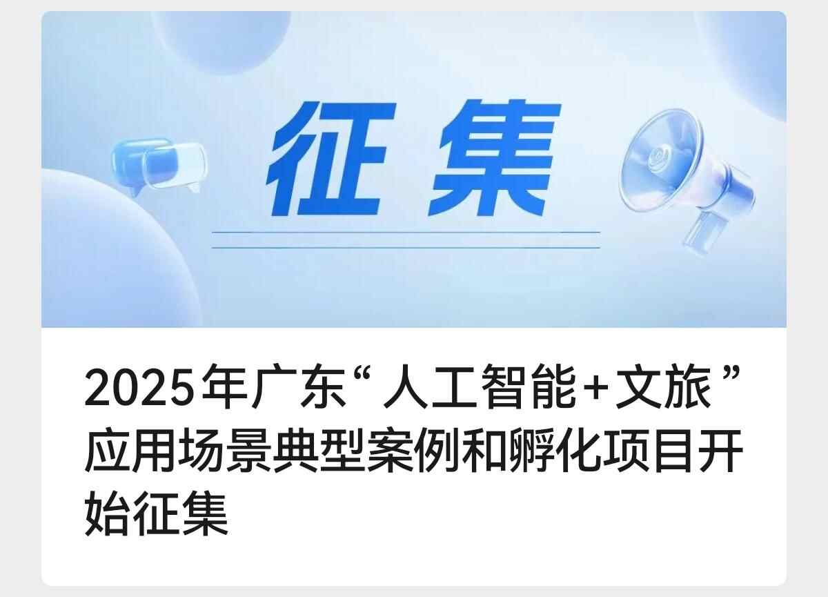 记者从广东省文化和旅游厅获悉,在全省范围内征集“人工智能+文旅”应用场景典型案例和孵化项目。