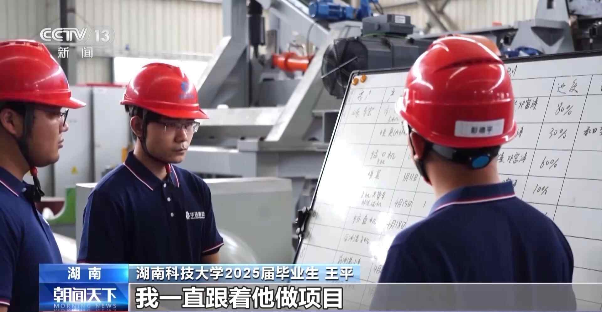 湖南科技大学2025届毕业生 王平:从大学开始,我一直跟着我的企业导师,他是我们公司的项目负责人。我一直跟着他做项目、搞技术,长时间的相处让我们之间的配合变得十分默契,也促成了我毕业之后就留在了公司。