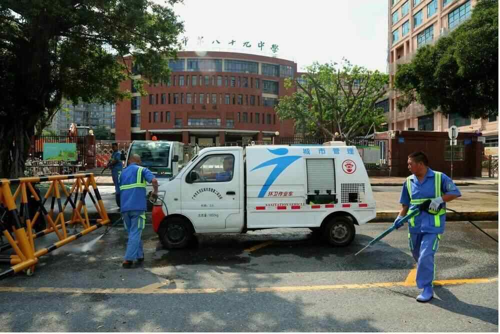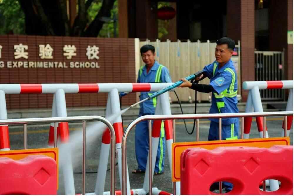 中考前夕,天河城管集中力量,对区内广州中学、75中、89中、汇景实验学校等多个考点周边及考生主要通行道路进行深度保洁。据统计,全区共出动环卫工人约118人次、作业车辆35余车次。中考期间,全区各环卫责任班组在考点周边增派保洁人员,强化巡回保洁力度,延长作业时间,确保路面干净整洁。