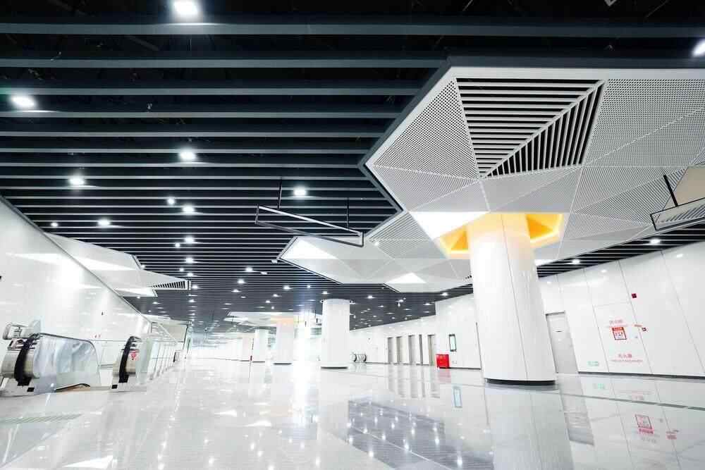 广钢新城车辆段是广州地铁十号线核心维保枢纽,这里肩负列车定临修、三月检等全周期养护重任。面对大体量施工与多专业交叉难题,建设者以“百区划分+多线流水”施工法,24台塔吊集群作业刷新进度。此外,十号线还创新打造了“一区一色一文化”特色空间,将沿线行政区文化基因融入车站空间,借助 BIM与装配式技术,实现了绿色建造与高效施工的双重突破。