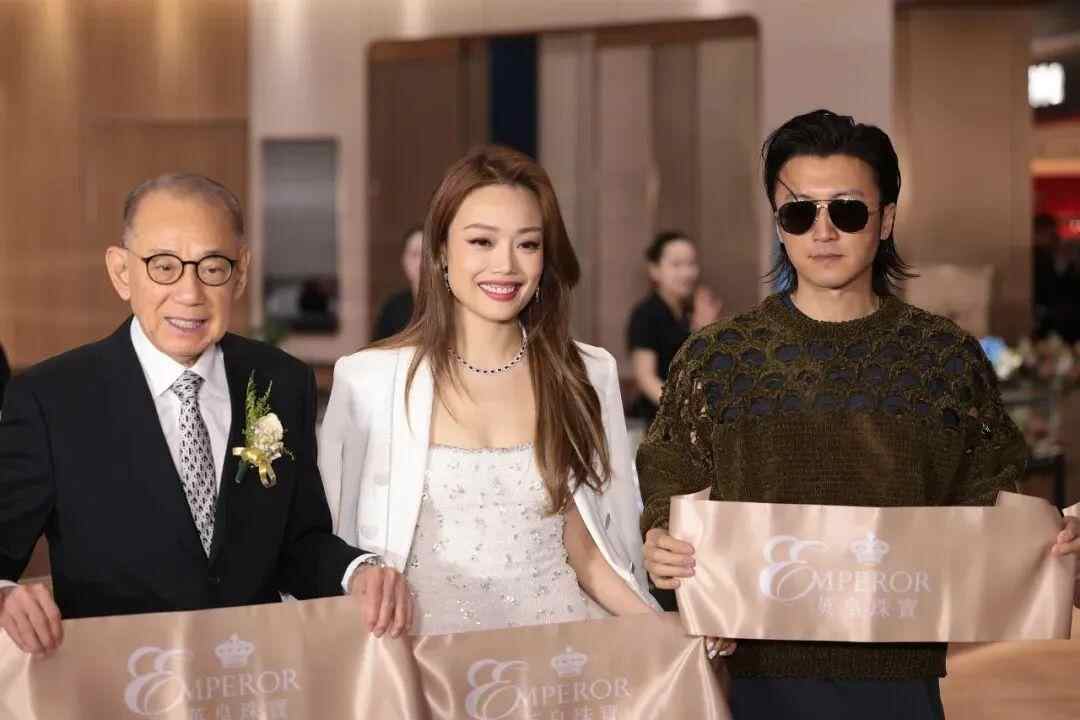杨受成携谢霆锋、容祖儿出席英皇珠宝新店开业典礼。图/视觉中国