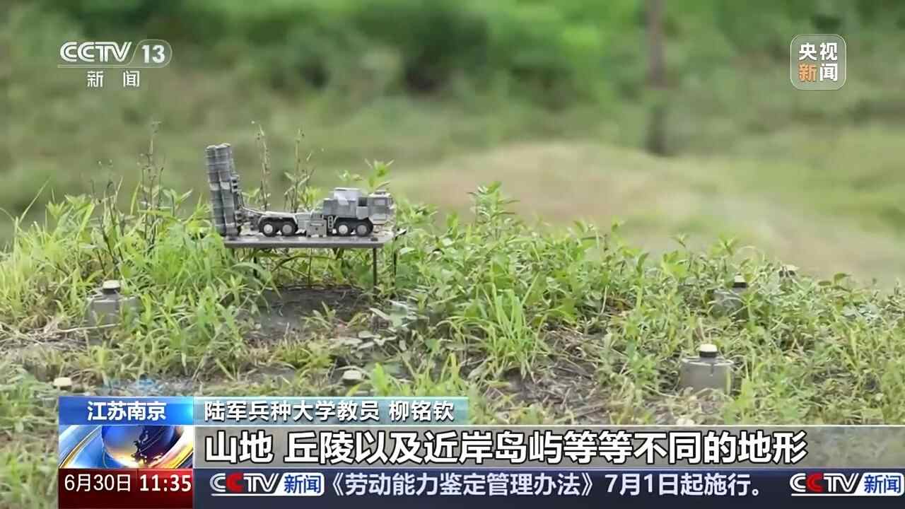 据陆军兵种大学教员柳铭钦介绍,整个的目标区域是按照和现地的比例1: 40进行了缩小。按照地形设置了山地、丘陵以及近岸岛屿等不同的地形。根据现在当前战场上常见的一些典型目标,设置了雷达站、指挥所、桥梁等各类典型目标。目的是为了克服野外训练,特别是实弹射击弹药消耗多、组织难度大、安全风险高等等这样的难题。
