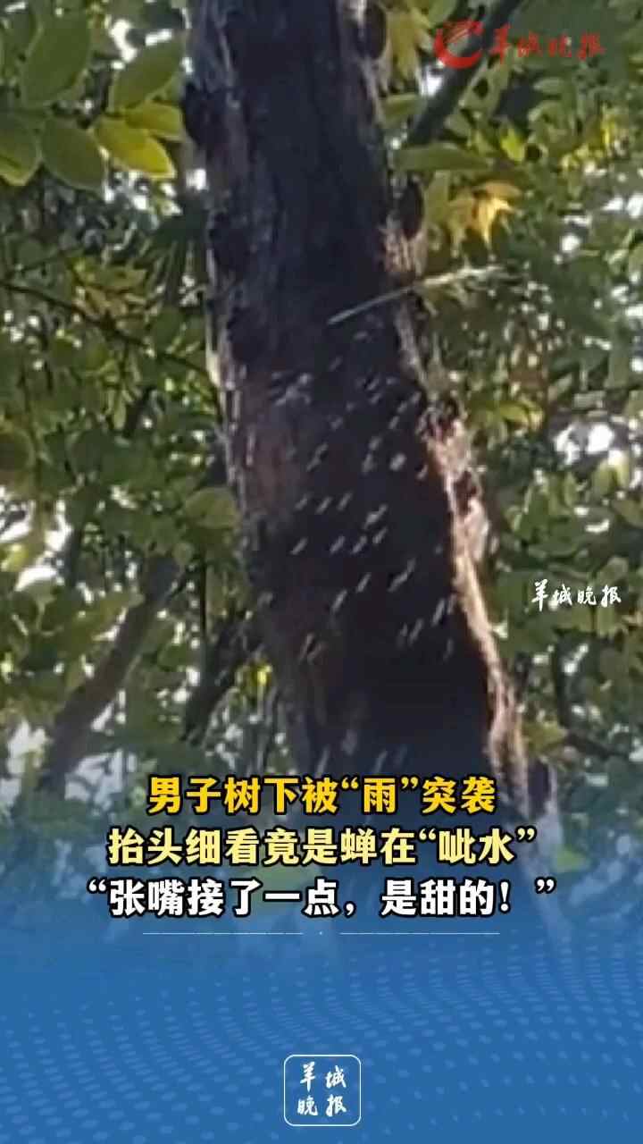 男子树下被“雨”突袭,抬头细看竟是蝉在“呲水”!