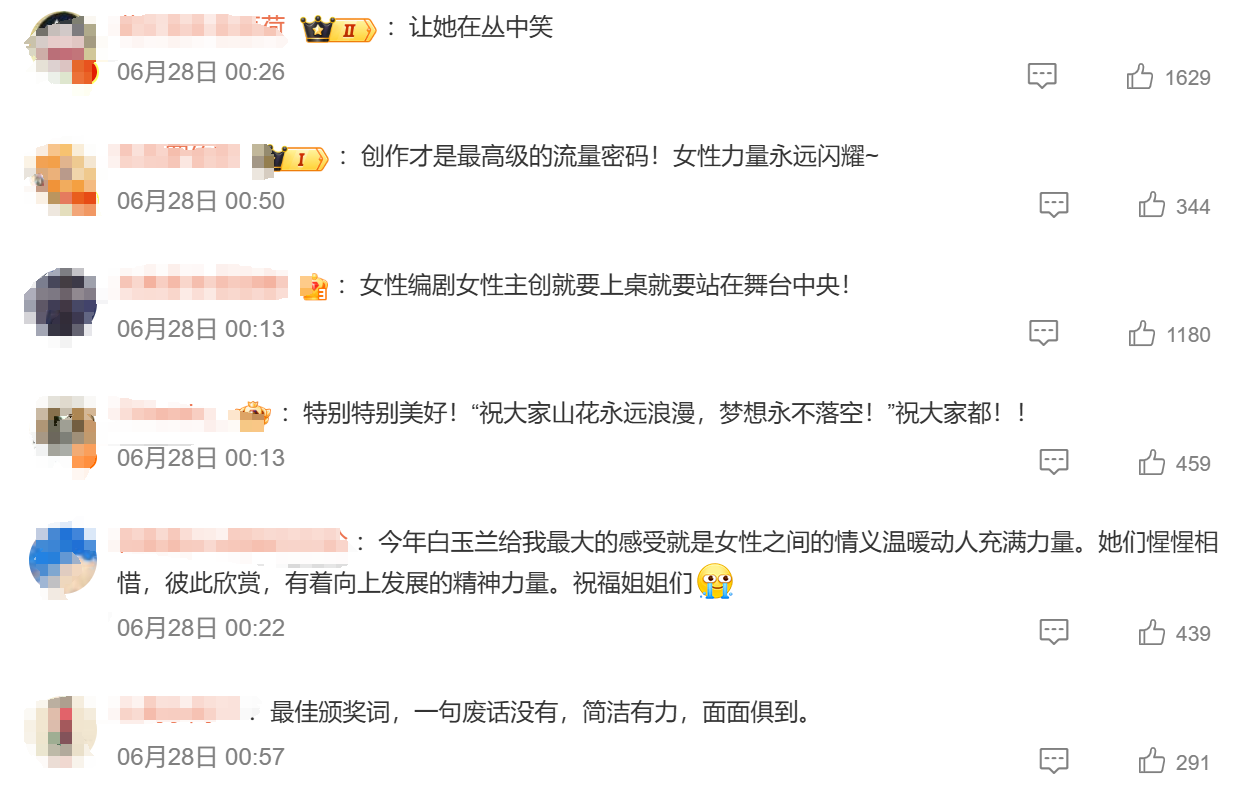 她的获奖感言也随之刷屏,引发了无数观众的热议。