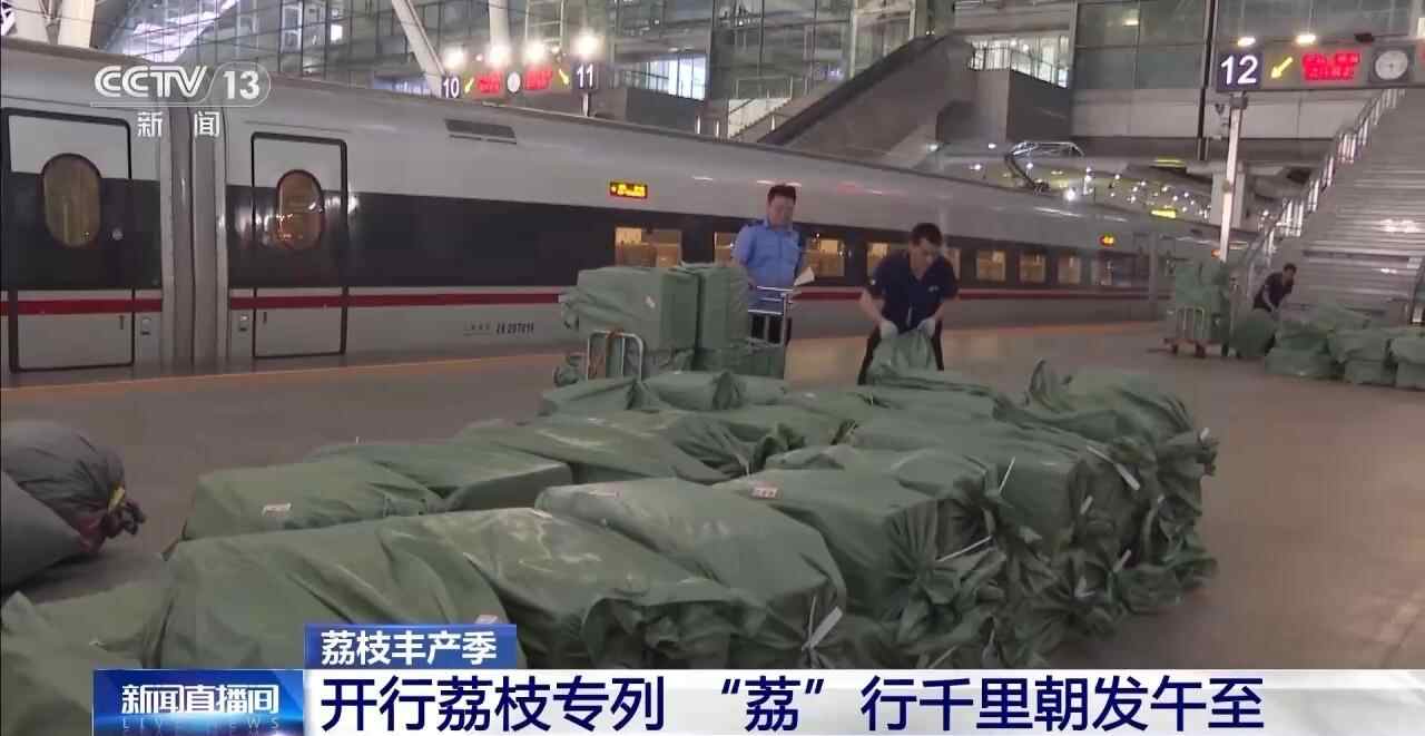 据介绍,今年6月5日至22日期间,国铁广州局每日固定开行两趟荔枝专列,分别是从广州白云站始发G568次和广州南站始发G696次,每日预留4节高铁车厢,日均运量超8吨。
