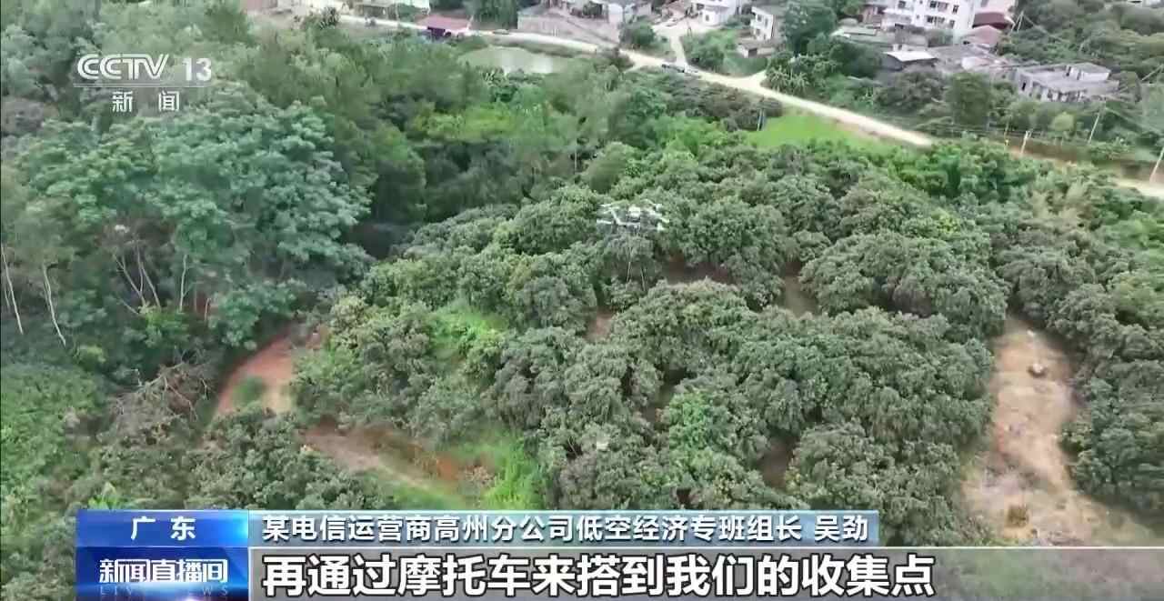 某电信运营商高州分公司低空经济专班组长 吴劲:无人机每斤运输成本是非常低的,大概1毛5左右,而传统运输需要从山上肩挑下来,再通过摩托车搭到收集点,粗略估算大概每斤成本4毛到5毛,所以运输成本大幅降低了。