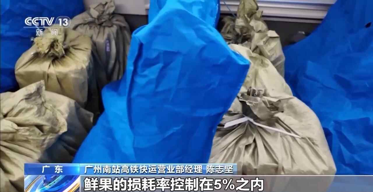 广州南站高铁快运营业部经理 陈志坚:在车厢内我们有温湿度监控,温度一般都在22摄氏度左右,鲜果的损耗率控制在5%之内。