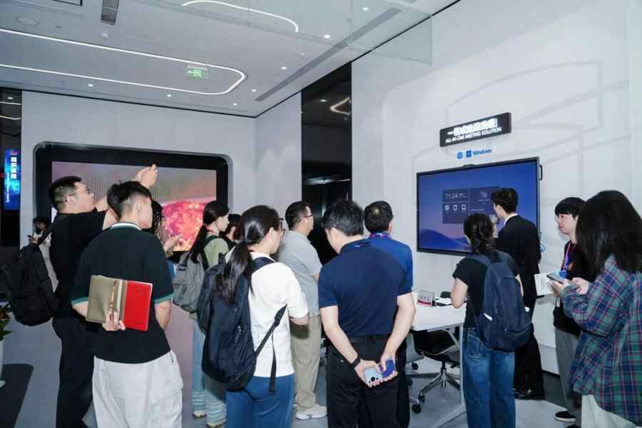 6月24日,参观者在视源股份第五产业园了解“一体式会议方案”。(受访单位供图)