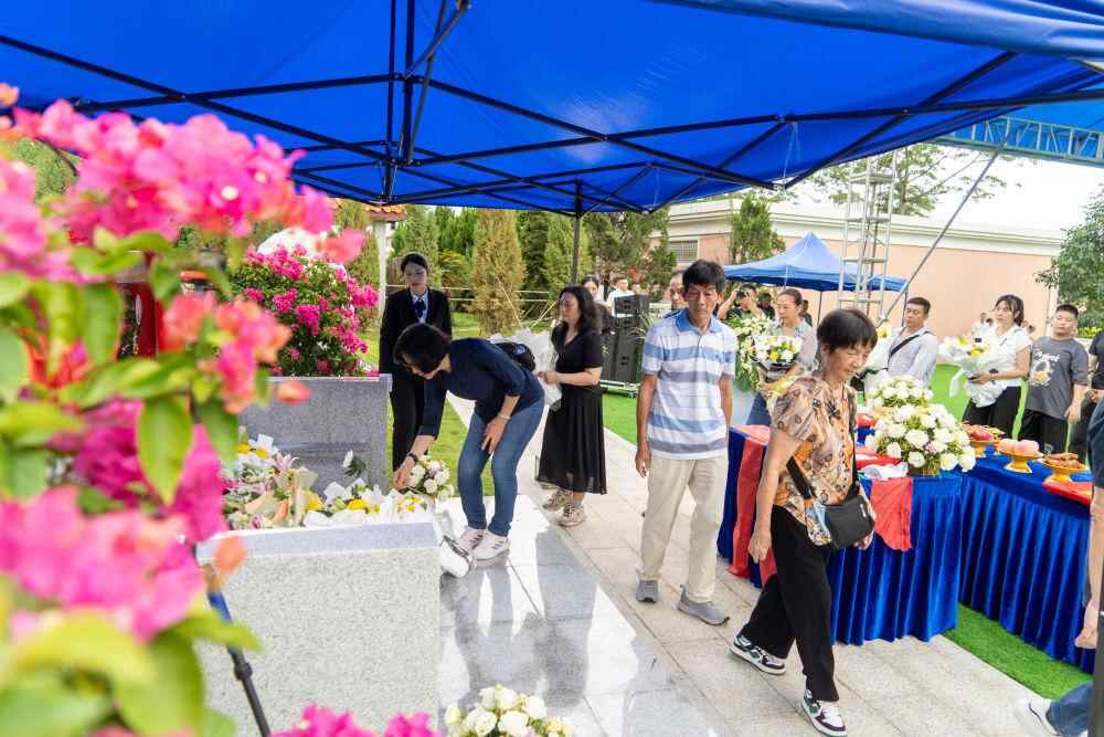 人们向黄旭华院士墓碑行三鞠躬礼,并敬献鲜花,以简约而庄重的仪式,送别国之脊梁。