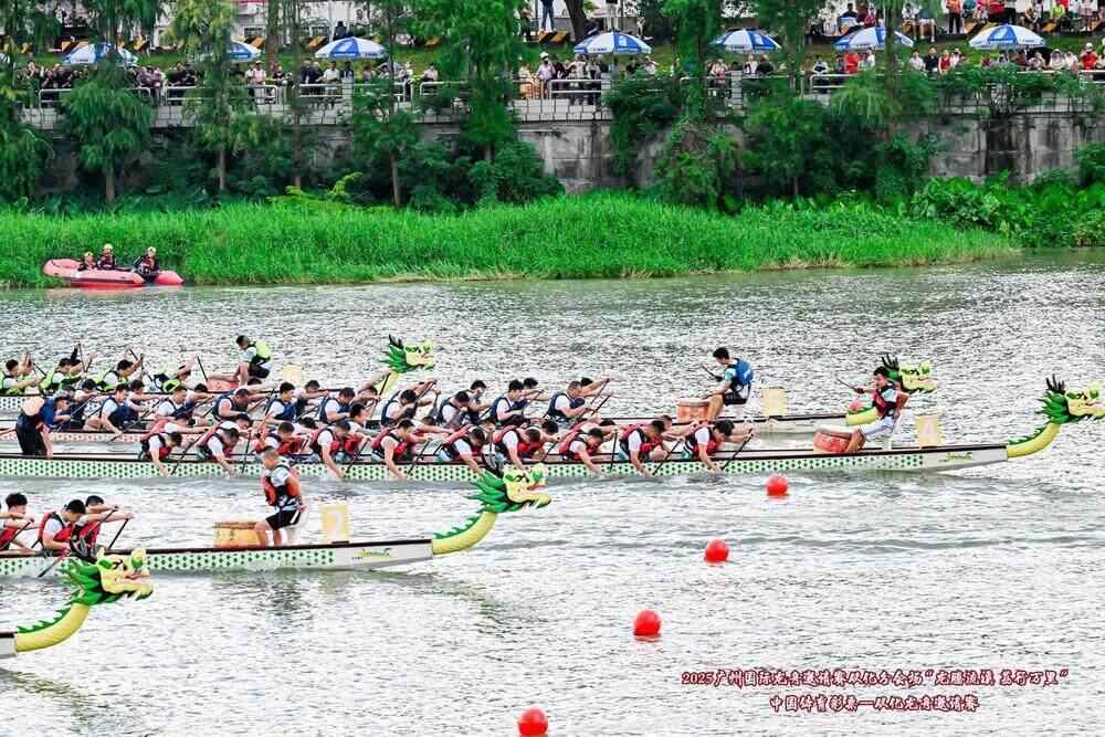 为响应全民健身国家战略,助力“百千万工程”与环南昆山—罗浮山县镇村高质量发展引领区建设, 6 月 29 日,2025 广州国际龙舟邀请赛从化分会场 ——“龙腾流溪 荔行万里”中国体育彩票・从化龙舟邀请赛在流溪河金瓯广场河段激情上演。