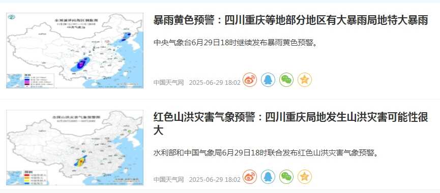 值得注意的是,今天四川盆地一带仍将是强降雨核心区,四川东部、重庆西南部等地部分地区有大暴雨,局地特大暴雨。