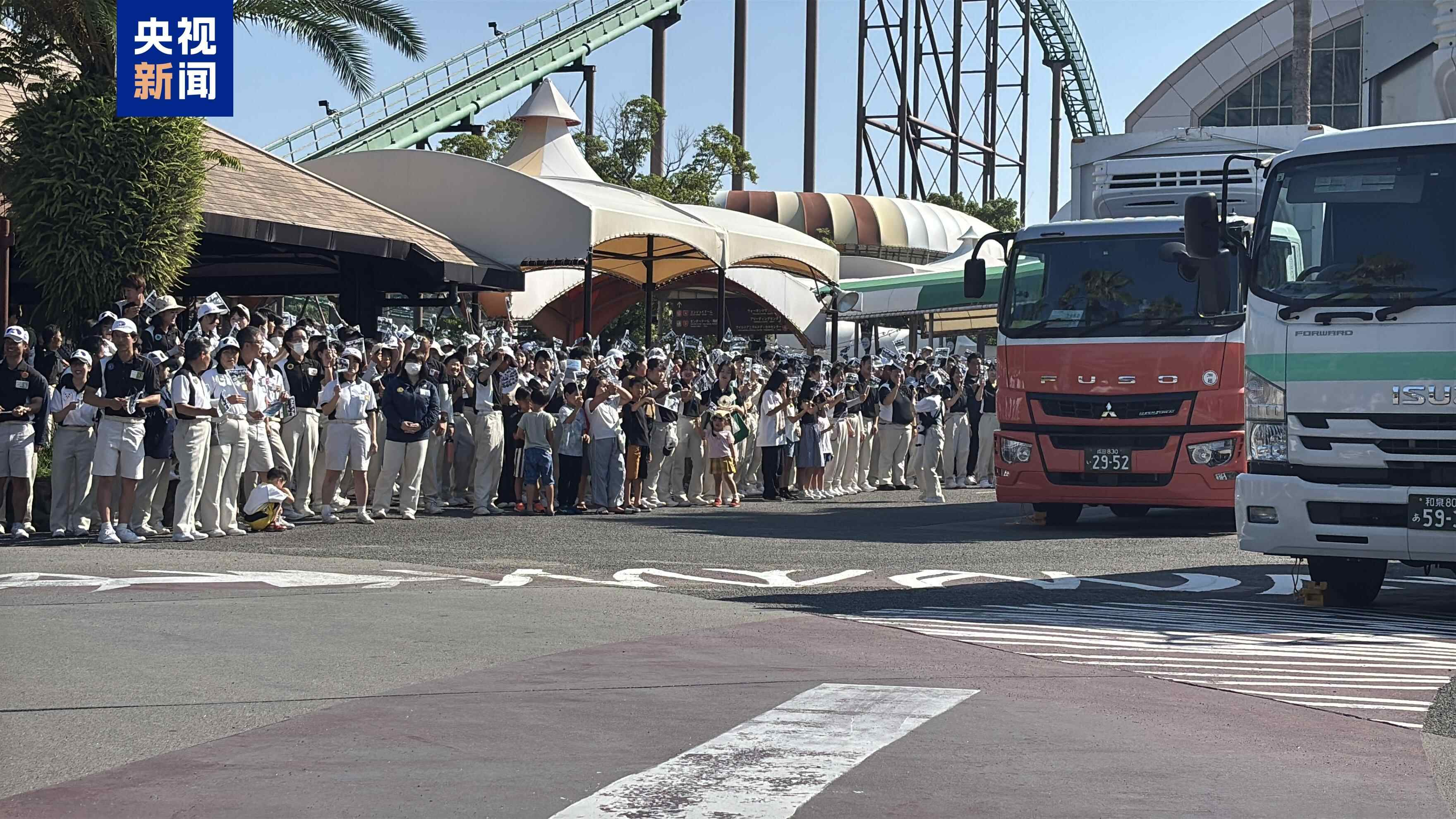 大批来自日本各地的大熊猫粉丝一早来到游乐园,为它们送行。