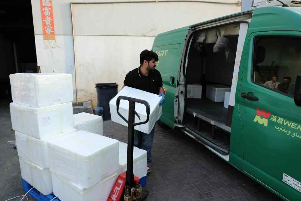 “我们从不使用防腐剂,依靠低温预冷与冷链运输,保留原始果香与脆爽口感。”温超蔬果采购负责人周强介绍,荔枝运输途中使用冰块保冷,抵达仓库后加派车辆按门店需求即时配送。其中,600公斤的白糖罂在两天内售罄,几乎“秒光”。受益于今年国内荔枝丰收,价格比往年便宜许多。妃子笑每斤售价为19.9迪拉姆(约合40元人民币),果核小、肉厚、糖度高,广受欢迎。