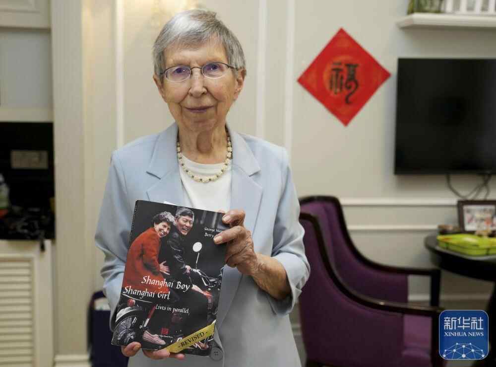 2025年6月13日,白丽诗展示自己与丈夫王正文合著的英文版回忆录《上海男孩,上海女孩》。