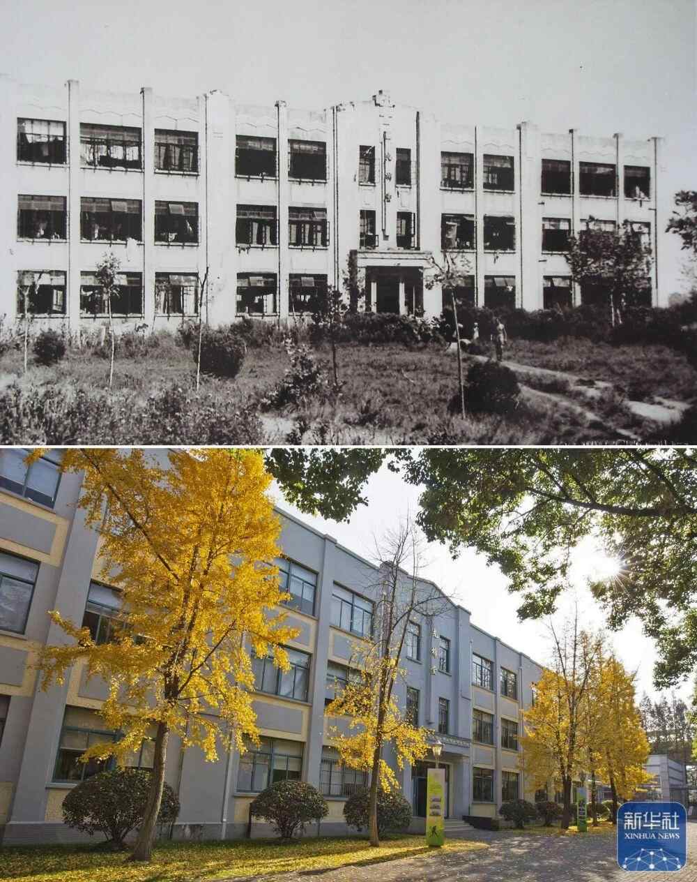 上图是上海龙华集中营的E栋大楼;下图是上海中学校园内的先棉堂,曾经的E栋大楼(资料照片)。新华社发(上海中学供图)