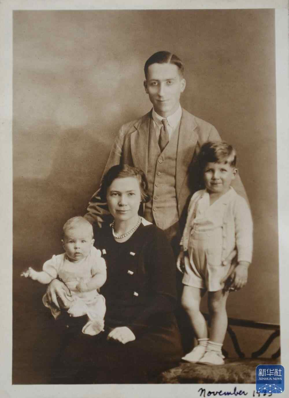 白丽诗一家四口1933年11月的合影(翻拍照片)。