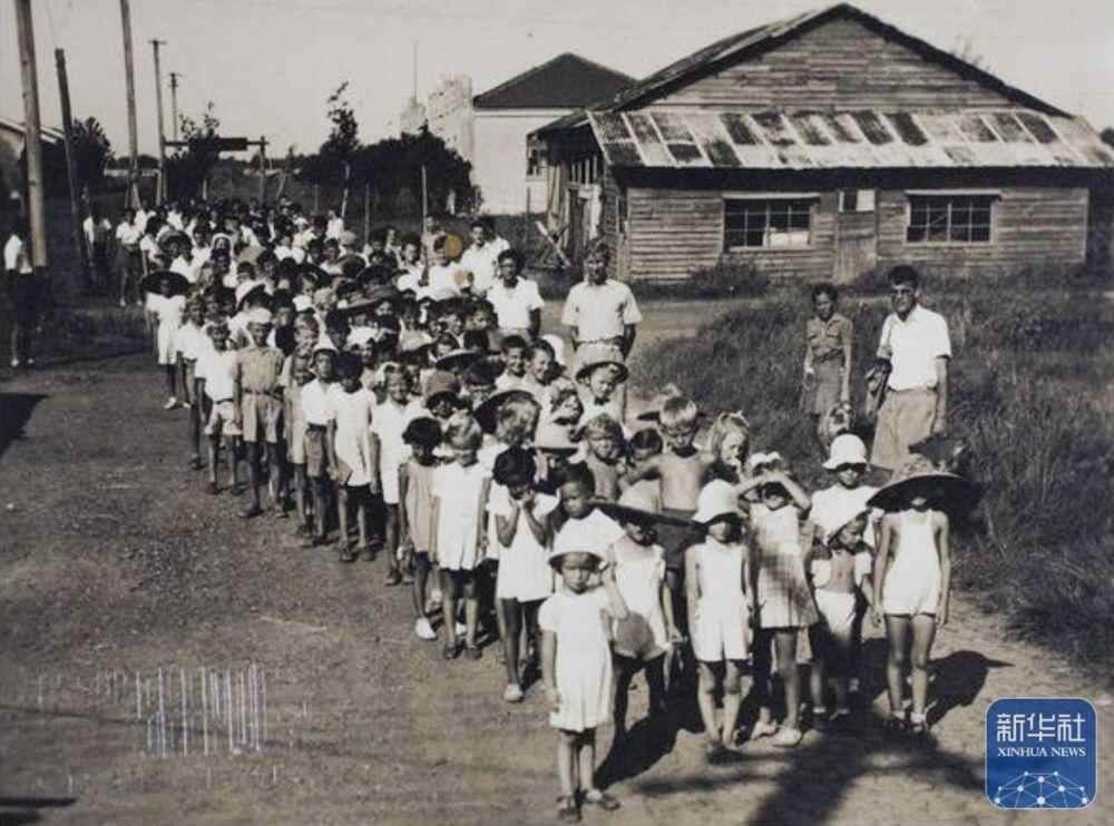 上海龙华集中营内的孩子们(资料照片)。新华社发(上海中学供图)