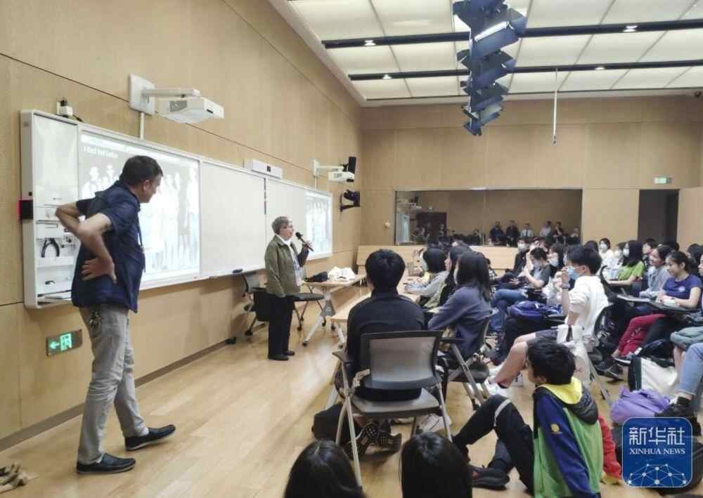 2021年4月28日,白丽诗在上海中学与学生交流。新华社发(上海中学供图)
