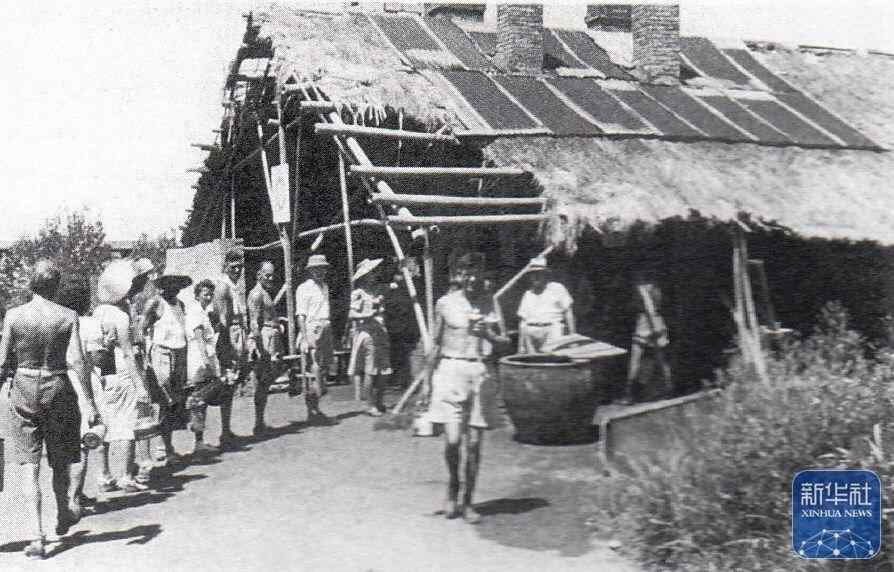 上海龙华集中营里,人们在排队取水(资料照片)。新华社发(上海中学供图)