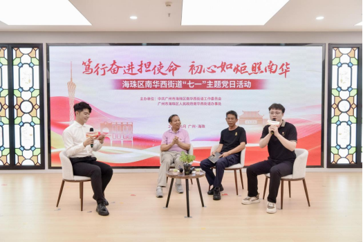 为深入学习宣传贯彻党的二十大精神,筑牢党员干部理想信念根基,2025年6月26日,海珠区南华西街道党工委、办事处举办“笃行奋进担使命 初心如炬照南华”“七一”主题党日活动。活动以一场跨越老中青三代党员的初心对话为核心,通过致敬荣光、榜样传承、治理创新、文化聚力四大篇章,立体展现了街道党员干部的昂扬风貌与时代担当,奏响了党群同心、共筑幸福家园的嘹亮乐章。