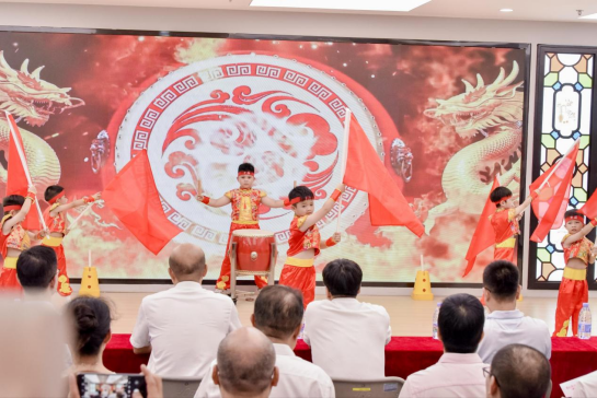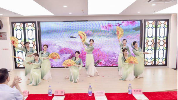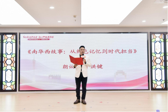 除了庄重的仪式与深刻的对话,活动现场更精心融入了丰富多彩的文艺表演,为严肃的党日活动增添了感染力与社区温情。福安幼儿园孩子们充满活力与童趣的《功夫献艺庆七一》舞蹈传递着新生代对党的纯真热爱与美好祝福;南华西卓别林艺术团倾情演绎的小品《南华益家亲》,取材于“南华闪电修”服务队的真实感人事迹,生动再现了社区邻里情深、党群同心互助的温暖画面,赢得现场观众共鸣。星辉艺术团带来的舞蹈《梅花赋》,以优美的舞姿将现场气氛推向了又一个高潮。广州市文化馆演绎部于洪键带来的朗诵《南华西故事:从红色记忆到时代担当》,以深情的语言回顾了街道的红色基因与奋斗历程,激励党员干部在新时代新征程上奋勇前行。