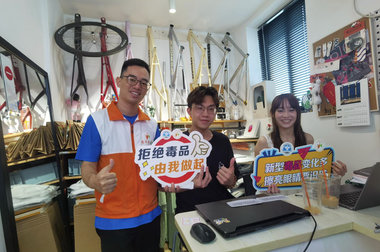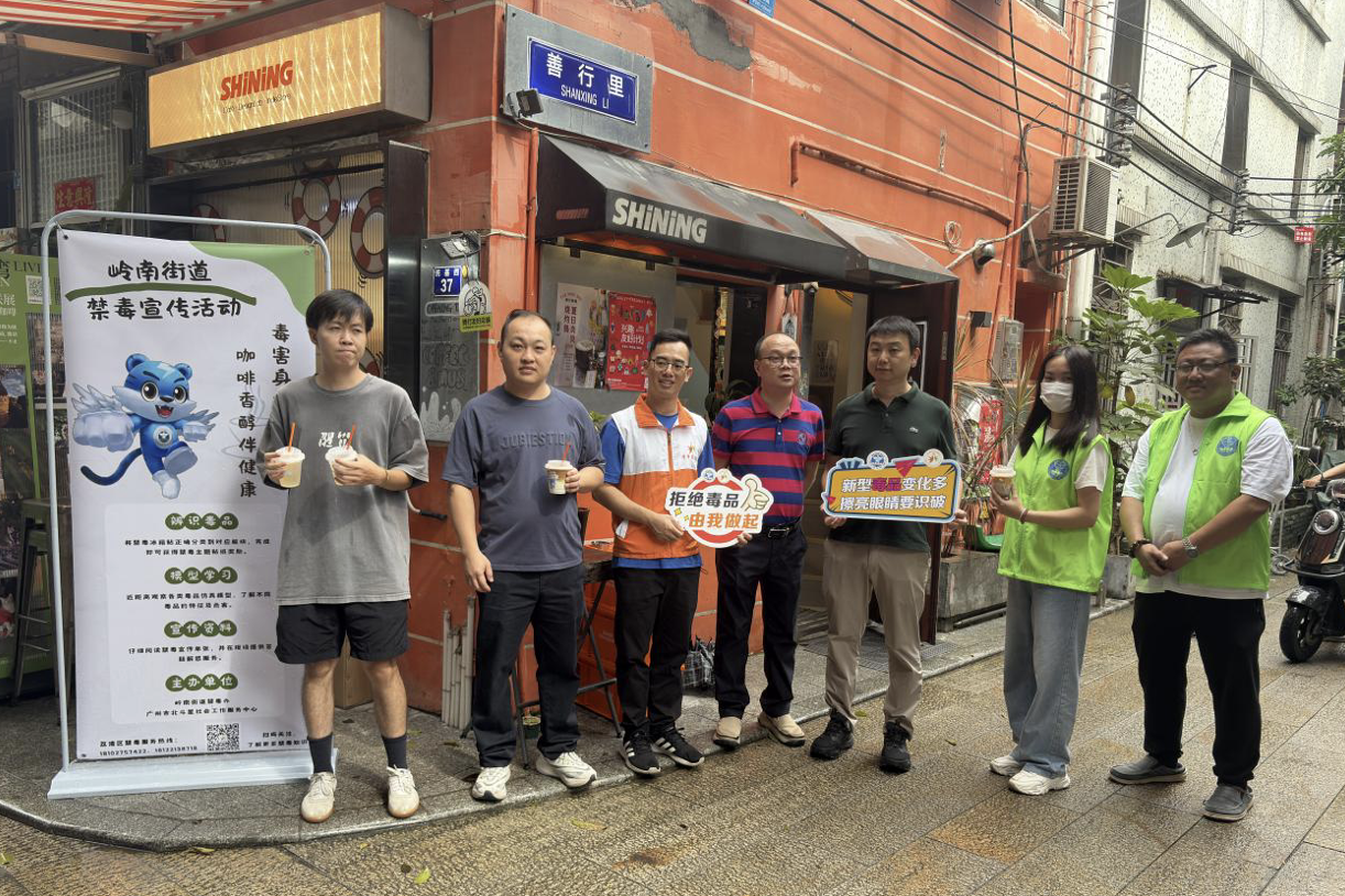 近日,广州市荔湾区岭南街道禁毒办携手广州市北斗星社会工作服务中心,在岭南街道启航社工站旁的SHINING善行咖啡店内,开展了一场禁毒宣传活动。
