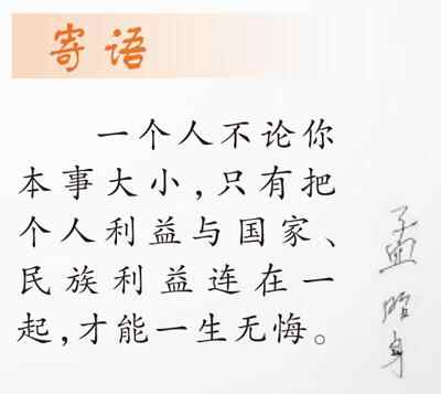 抗战胜利后,孟昭身又参加了解放战争和抗美援朝战争,1986年从沈阳军区装甲兵副司令员的任上离休,“我一直用这句话来激励自己:保持晚节忠于党,燃尽残烛报党恩。”
