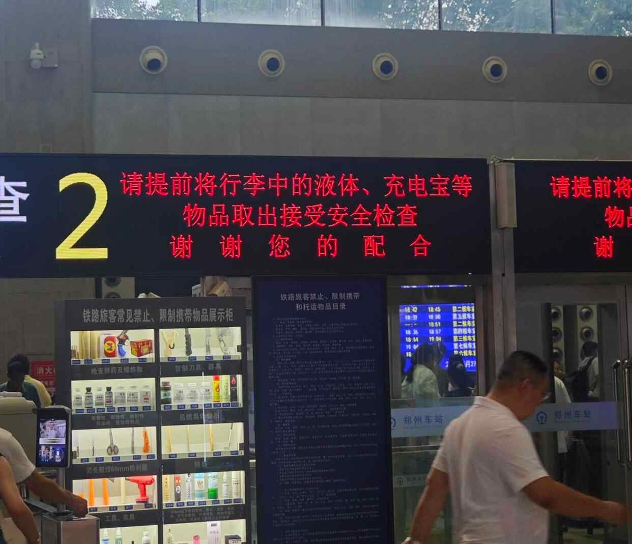 郑州火车站内,安检口的大屏幕上提示旅客:“提前将行李中的充电宝取出接受安全检查”。工作人员表示,根据《铁路旅客禁止、限制携带和托运物品目录》,标志清晰的充电宝、锂电池,单块额定能量不超过100Wh。