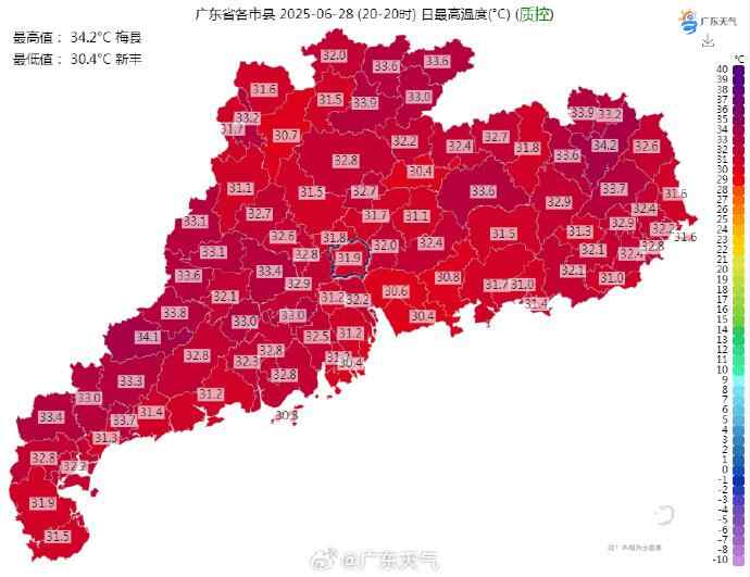 虽然雨水频繁,但广东空气湿度大,体感也比较闷热,28日广东最高气温依旧有34.2℃。