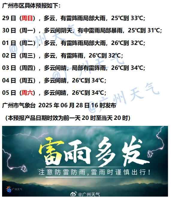 @广州天气预计,受副高边缘不稳定和低层南风影响,未来几天,广州雷雨频繁,局部雨势较大,尤其是在午后和凌晨发生的概率更高,局部伴有6~8级短时大风、短时强降水和雷电等强对流天气。