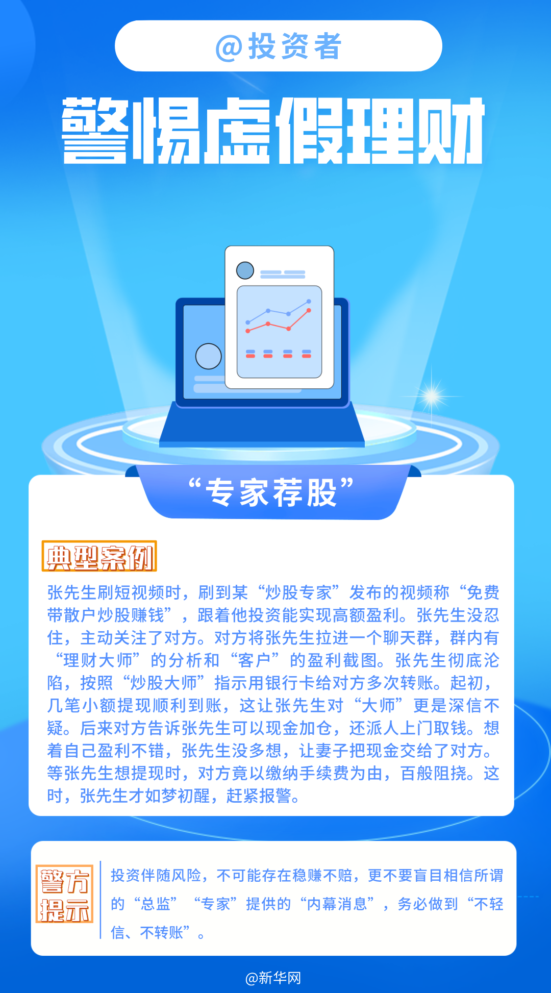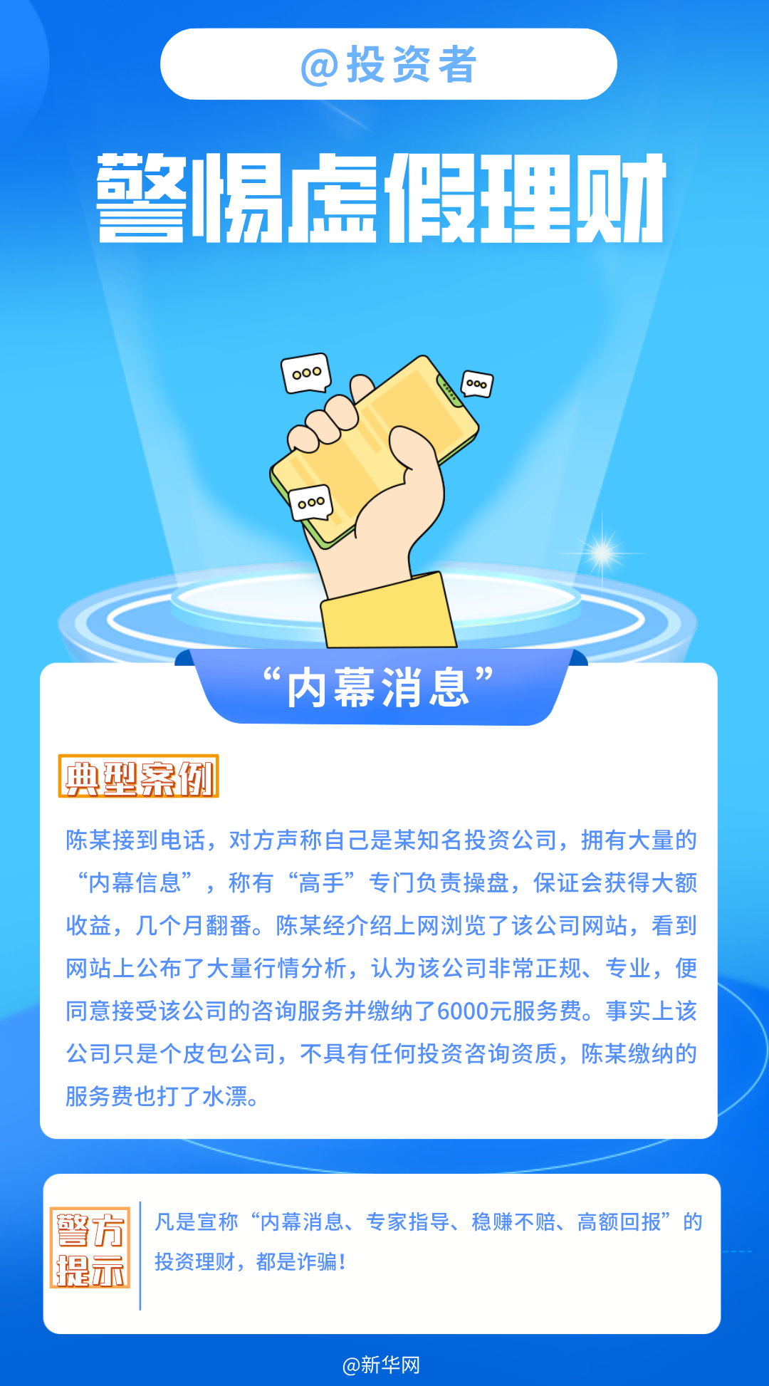 虚假网络投资理财诈骗系2025十大高发电信网络诈骗类型之一。“名师指导”“内幕消息”“稳赚不赔”......这些都是诈骗分子的套路,广大投资者们务必要提高警惕、仔细甄别。