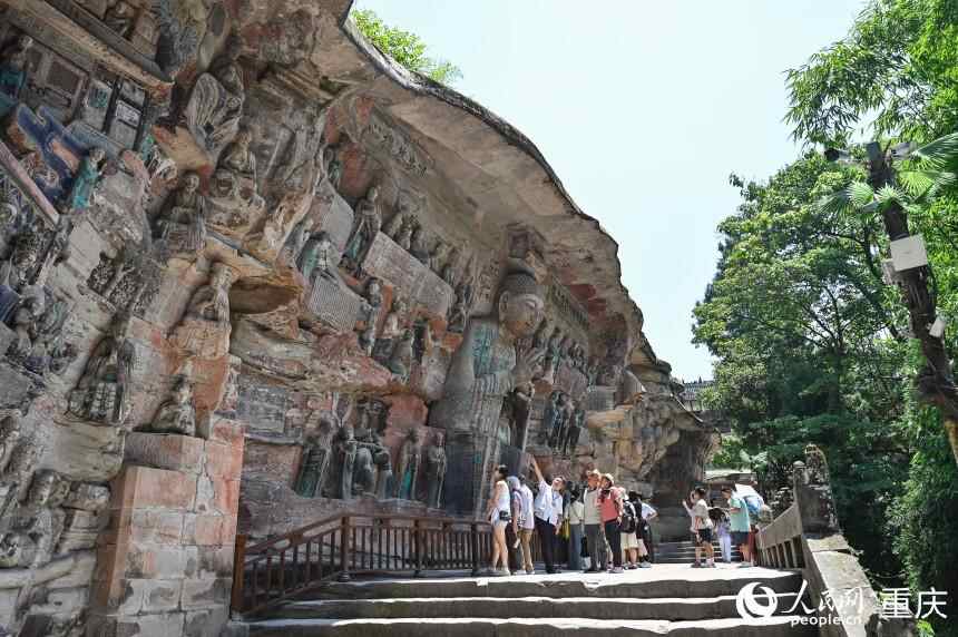 6月12日,宝顶山石刻景区内的游客。人民网 邹乐摄