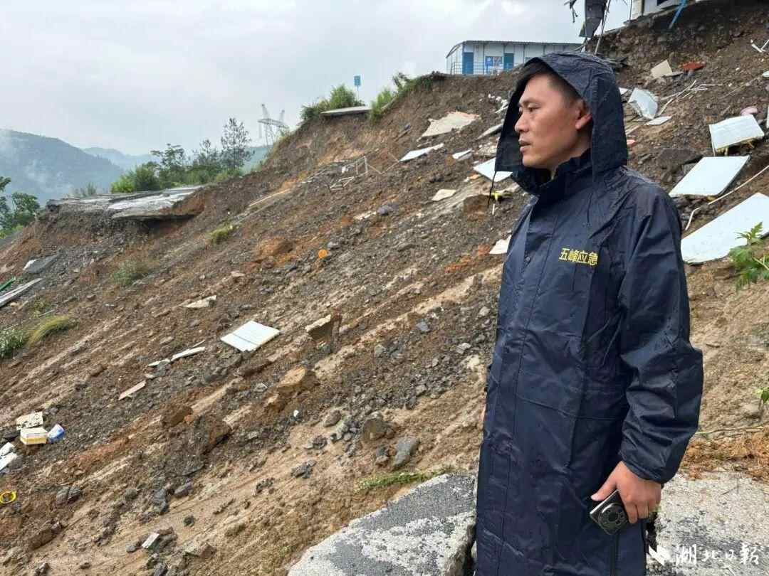 韩玉龙在滑坡现场。(湖北日报全媒记者记者 郭启超 摄,下同)