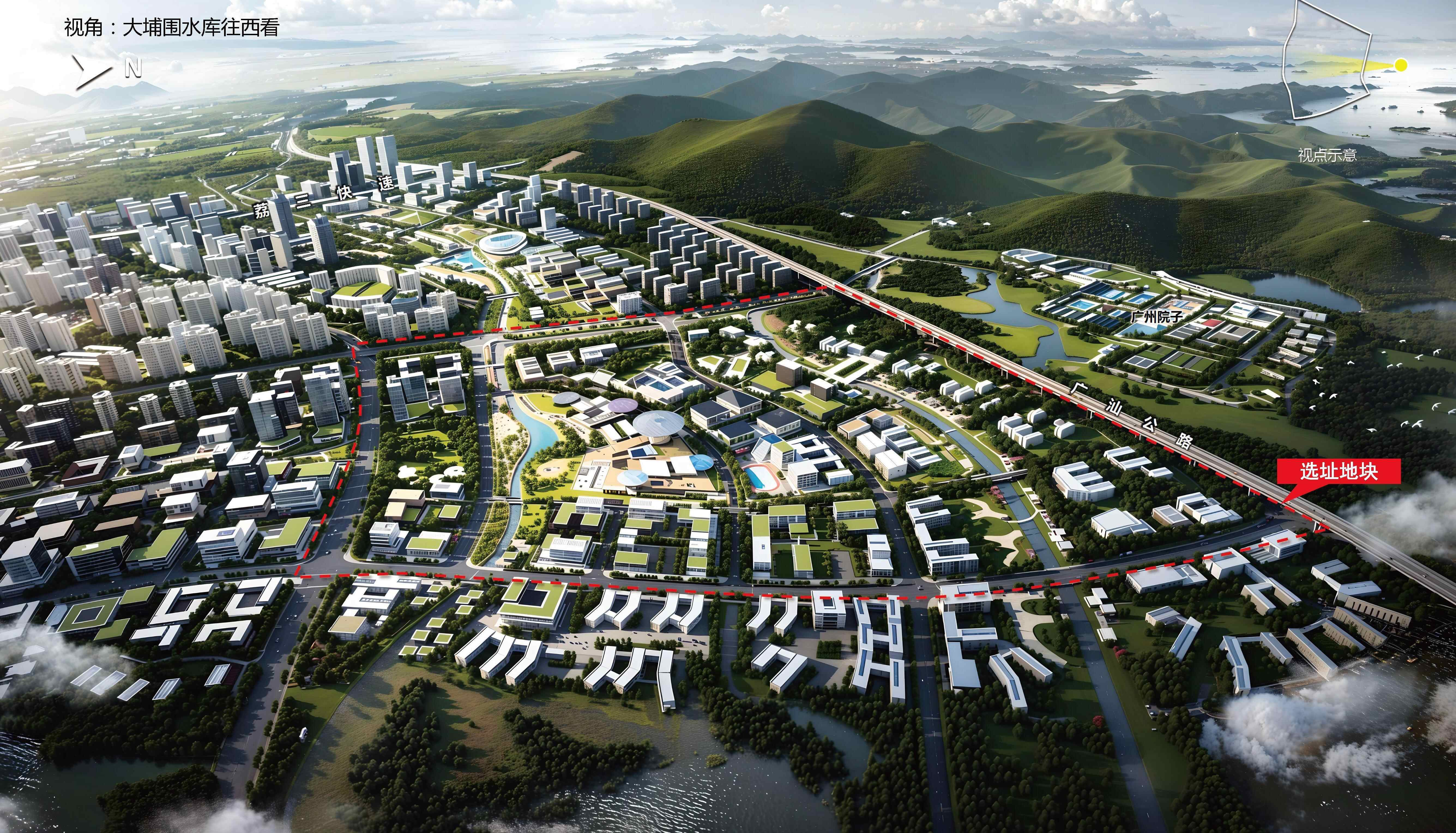 二是生态产业共创。依托大埔围水库及岭南水乡景观资源,联动约32平方公里的增城东部工业集聚区,规划“两心一轴两廊六片区”空间格局,塑造广汕公路沿线生态与科技交织的特色科创小镇。