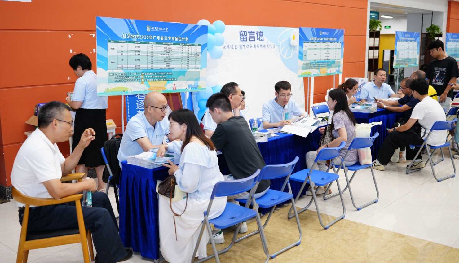 当天,广财招生考试部等部门联合18个本科招生学院提供“一站式”服务。活动现场设置三大板块:一是政策权威解读——在正心堂详解办学特色与录取政策,优秀校友方梓楠及学生代表现身说法,分享求学成长经历;二是沉浸式校园导览——开放校史馆、经管实验中心、图书馆、“正空间”等标志性场所,家长可实地参观体验智慧教室、多功能食堂及新建的大湾体育公园;三是个性化咨询专区——18个学院负责人坐镇,针对61个招生专业提供志愿填报指导,其中11个创新班(实验班)咨询区备受关注。