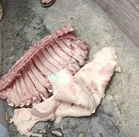 网友反映富顺县华英实验学校采购劣质猪肉。网传视频截图