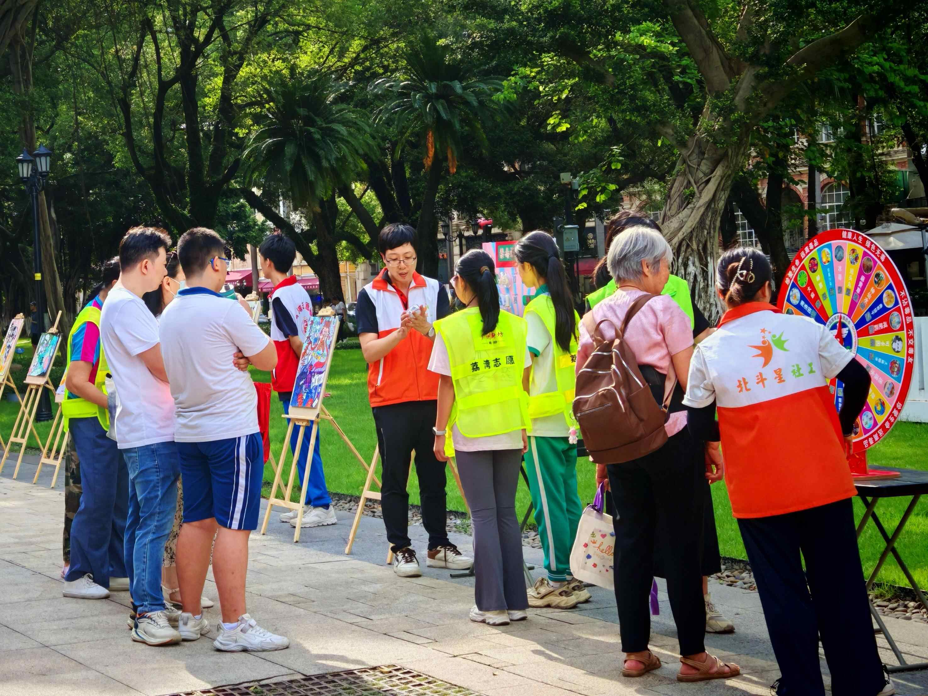 知识宣传区涵盖了禁毒、反诈反邪、扫黑除恶、反走私、防轻生、预防未成年人犯罪、防家暴、法治宣传等多个方面。沙面街道平安办、派出所、司法所等单位的工作人员现场发放宣传手册,解答群众疑问,增强了群众的法治意识和自我保护能力。
