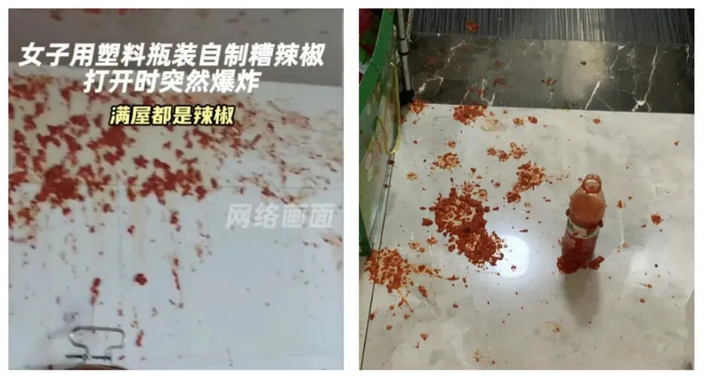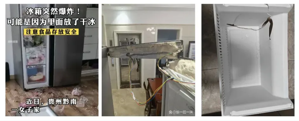 而且,相对于其他的水果饮料爆炸,干冰冷冻后爆炸更严重。此前甚至发生过因存放干冰,导致冰箱门被炸开的情况。