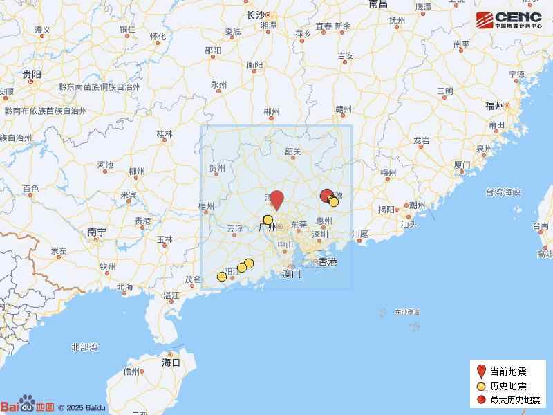 周边县城:震中距清城区14公里、距清新区20公里、距花都区25公里、距从化区43公里、距佛冈县47公里,距清远市14公里,距广州市55公里。