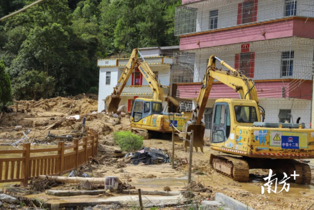 6月20日中铁十二局率先抵达现场清理淤泥。图片来源:信宜发布