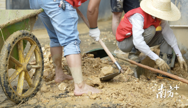 “这家排水沟挖通了!”嘶哑的欢呼声中,七把铁锹同时扬起,甩起的泥浆在空中划出清晰弧线。“这边再来两人!”党员干部喊着号子,肩背抵住倾倒的院门奋力一顶——6月22日,信宜市贵子镇中和村里,300多双沾满泥浆的手,正为被淤泥封死的家园破开“呼吸的通道”。