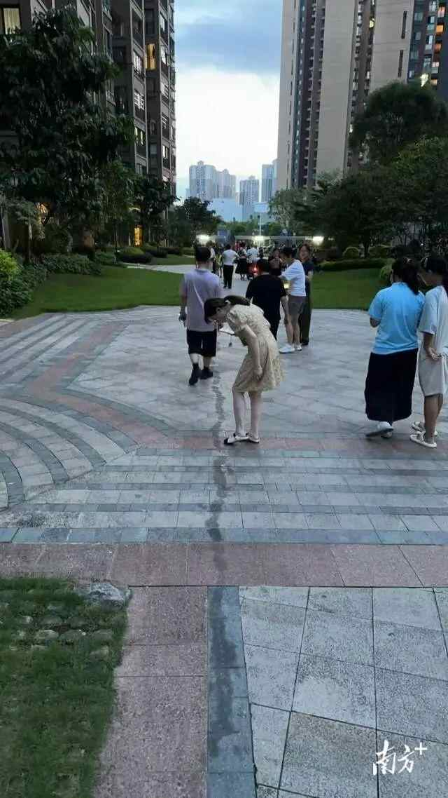 家住清远金海湾豪庭的市民俞先生告诉记者,网上疯传的小区路面受地震影响开裂图片为假,实地观察后发现“高空看到的裂纹”,实际是水渍。